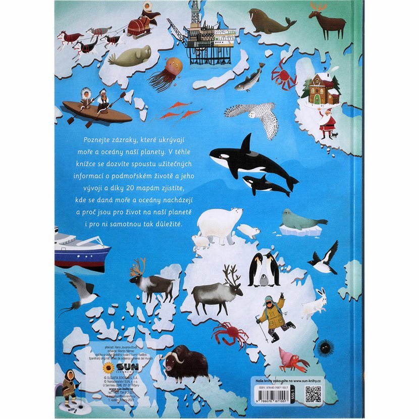 Komplexní pohled na oceány: Kniha představuje všechny oceány a významná moře světa prostřednictvím 20 velkých, přehledných map. Každá mapa poskytuje detailní informace o geografické poloze, hloubce, teplotě vody a charakteristických rysech jednotlivých vodních ploch.