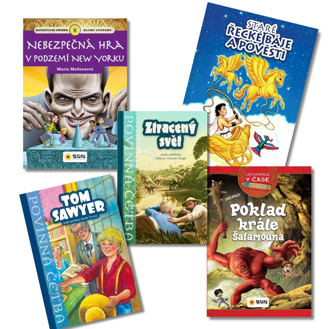 Pět knih, které zaručeně zabaví každého malého dobrodruha! Tento akcí nabitý balíček od Nakladatelství SUN kombinuje moderní napínavé série jako Klub stopařů a Cestovatelé v čase s nesmrtelnou světovou klasikou – od dinosaurů ve Ztraceném světě, přes bájné řecké hrdiny až po legendární kousky Toma Sawyera. Ušetřete oproti nákupu jednotlivých titulů a darujte napětí!