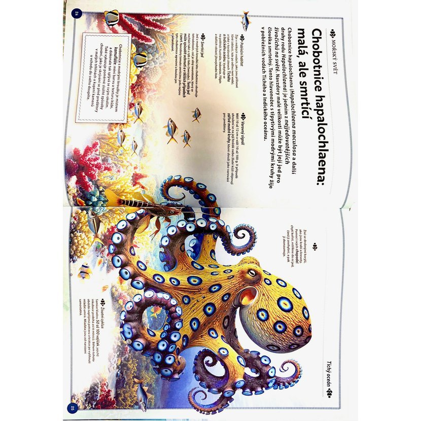 Čtenáři se dozvědí, jak se jednotlivé druhy přizpůsobily životu pod hladinou, jakou ekologickou roli v mořských ekosystémech hrají, a jaké výzvy musí v tomto proměnlivém prostředí překonávat. Tato dobrodružná výprava do hlubin oceánů odhaluje, proč obyvatelé moří stále fascinují a představují nevyčerpatelný zdroj inspirace. Kniha zdůrazňuje lokalizaci jednotlivých druhů, jejich adaptaci na chlad, stravovací návyky a ekologické vazby, což ji činí nejen vzdělávací, ale i strhující četbou pro všechny zájemce o mořskou přírodu a dobrodružství. Díky velkoformátovým ilustracím se tato velká XXL encyklopedie určitě stane chloubou vaší rodinné knihovny.