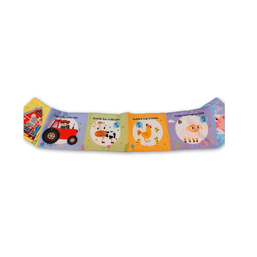 Látková knížka je vyrobena z měkkých, dítěti bezpečných materiálů, které jsou příjemné na dotek a odolné vůči zacházení malých dětí. Vazba látkové leporelo zaručuje, že stránky nelze roztrhnout ani pomačkat. Knížka je určena pro děti od 0 let.