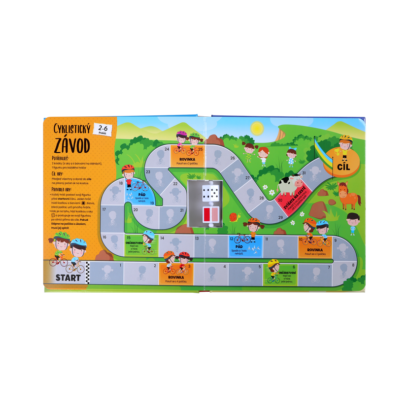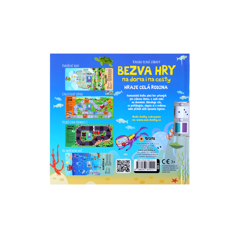 Hraje celá rodina, fantastická kniha, plná her určených pro zábavu doma, v autě nebo na dovolené. Obsahuje vše, co potřebujete, abyste se s dětmi, rodinou nebo přáteli užili spoustu legrace. Obsahuje integrované kostky - číselnou a barevnou, aby se nikde, ani doma ani v autě nemohla nikde zatoulat,