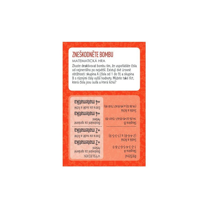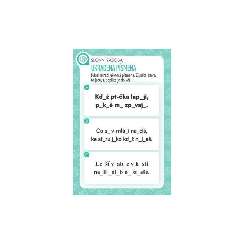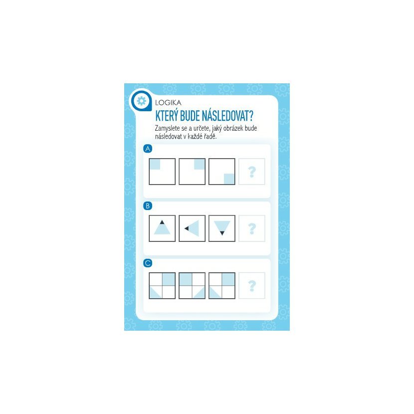 Uvnitř najdete 50 karet plných zábavných a podnětných úkolů, rozdělených do přehledných kategorií podle zaměření: modré karty procvičí logiku, žluté potrápí postřeh při hledání rozdílů a přiřazování, růžové posílí paměť, zelené obohatí slovní zásobu, fialové podpoří koordinaci a červené nabídnou jednoduché matematické výzvy. Každá karta obsahuje úkoly ve dvou úrovních obtížnosti, takže si každý může zvolit tempo i náročnost podle sebe. Na zadní straně nechybí řešení, díky nimž je učení přirozené a bez stresu.