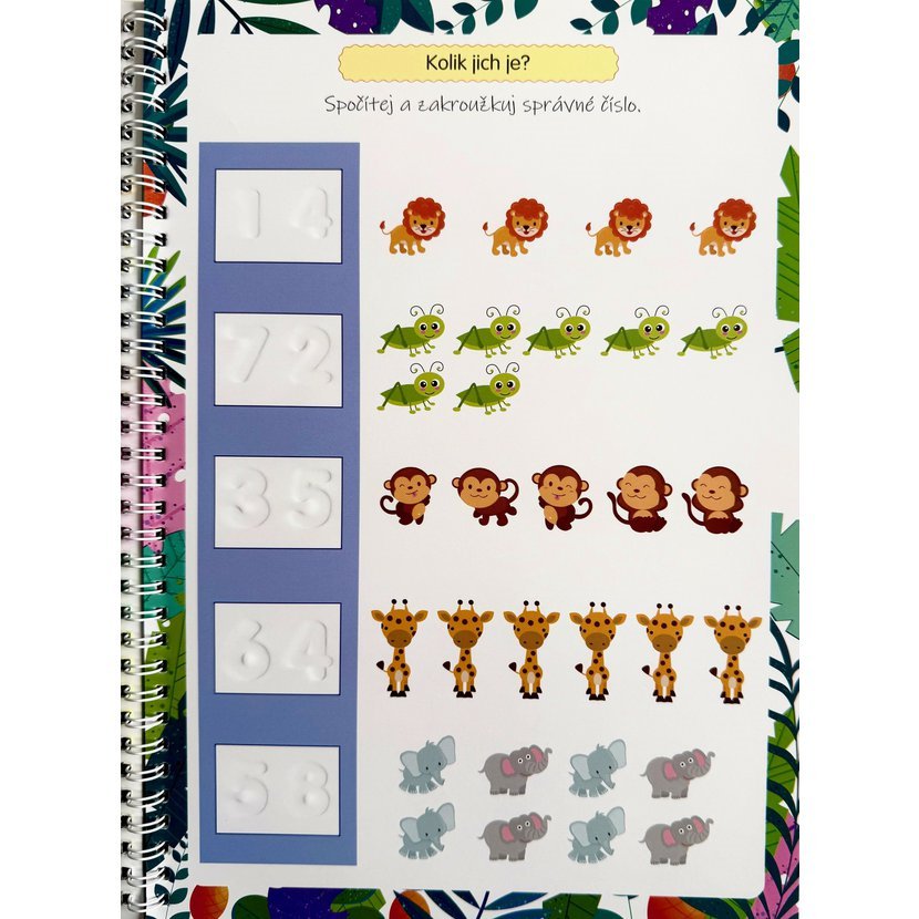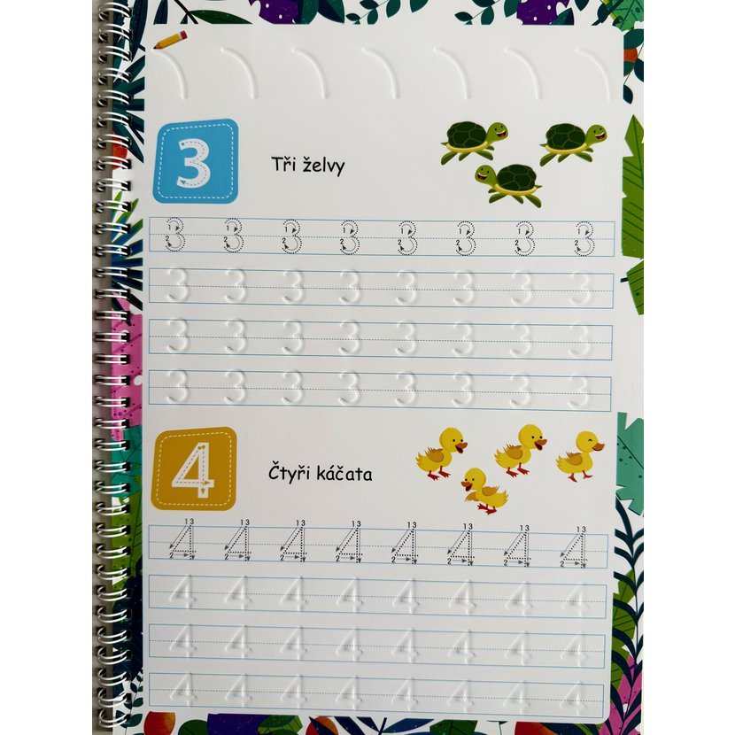 Součástí balení je speciální tužka s houbičkou na mazání, takže dítě může začít procvičovat ihned po rozbalení.