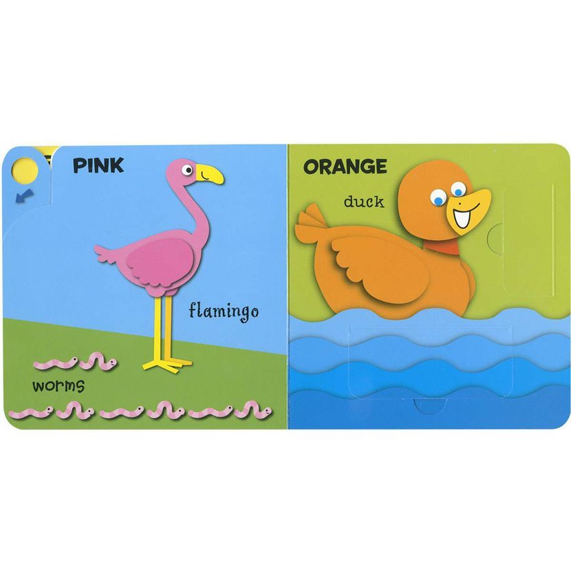 Toto interaktivní leporelo v sobě obsahuje různé se efektivní mechanismy, které pobaví vaše nejmenší. Děti budou otvírat okénka, otáčet prstem, vytahovat a učit se zábavnou formou. Spolu se zvířátky se budou učit poznávat různé barvy a zároveň je mohou určovat. Kniha před nimi otvírá pestrý svět barev!