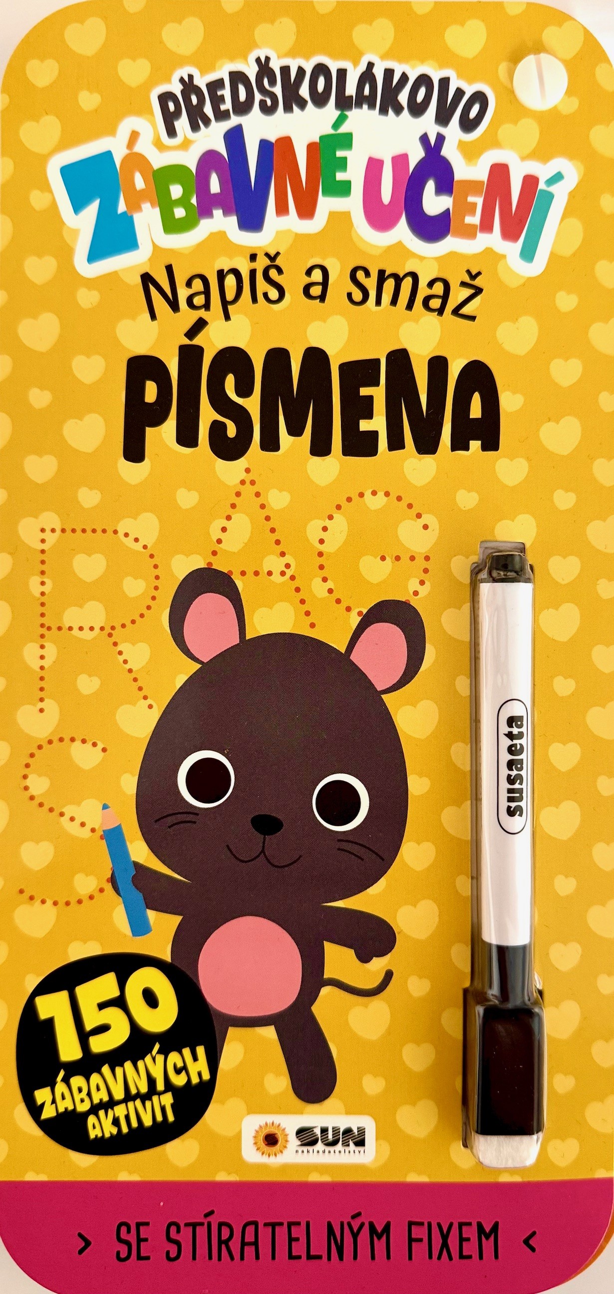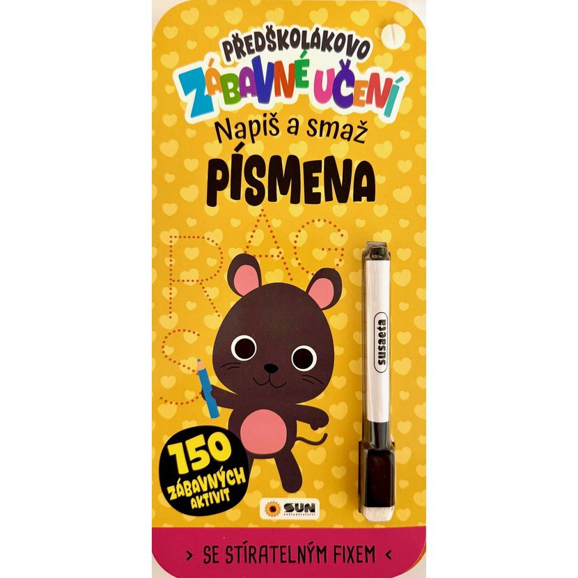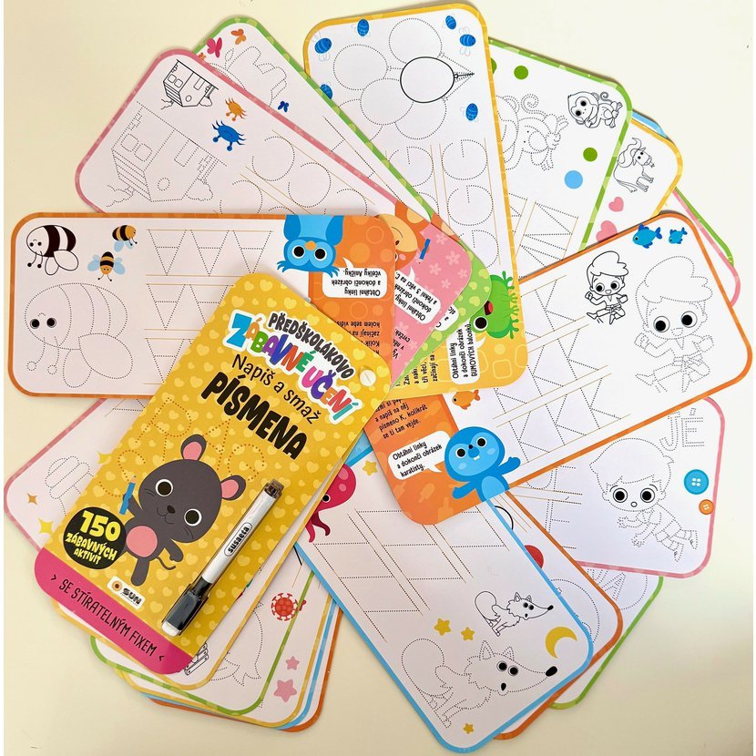 Kniha 150 zábavných aktivit – Předškolákovo zábavné učení: PÍSMENA - napiš a smaž - představuje novou, hravou formu výuky, která děti nejen pobaví, ale zároveň rozvíjí jejich asociační schopnosti, paměť, orientaci i představivost.