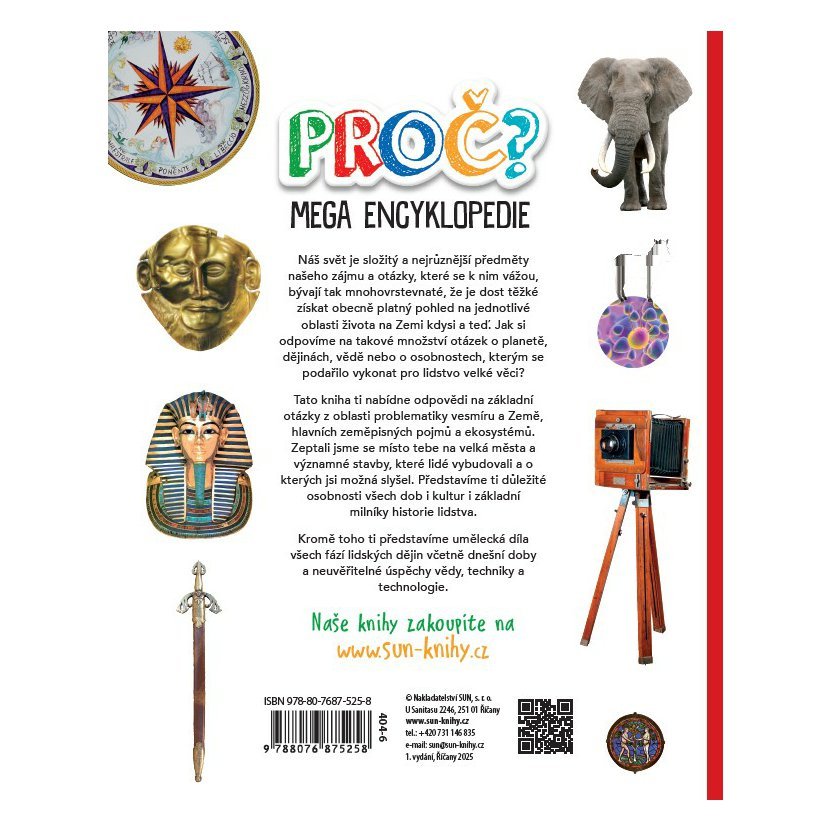 Náš svět je nesmírně rozmanitý a plný otázek, na které není vždy snadné najít jednoduché odpovědi. Každý den nás obklopují nové jevy, události i příběhy, které probouzejí zvědavost a touhu porozumět tomu, jak věci fungují – dnes i v minulosti. Právě proto vznikla tato velká, bohatě ilustrovaná encyklopedie plná otázek a odpovědí.