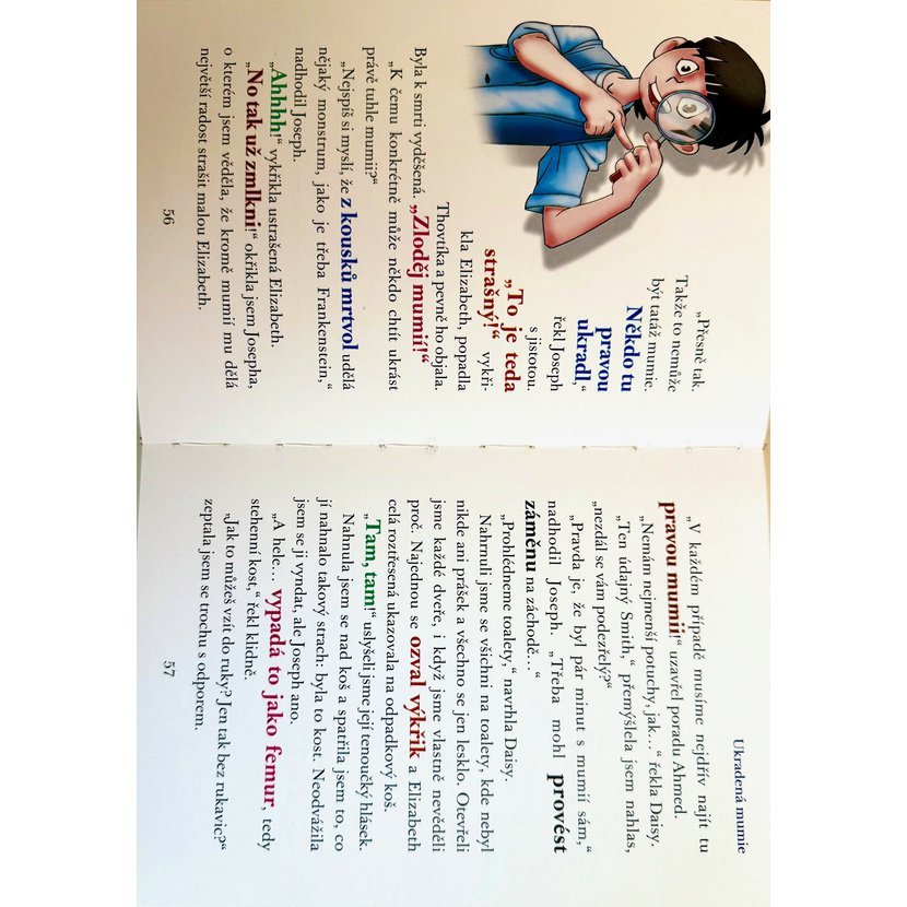 Kniha je doplněná úžasnými ilustracemi, má barevné písmo pro snadné čtení a orientaci v textu, obsahuje řešení hlavolamů a záhad.