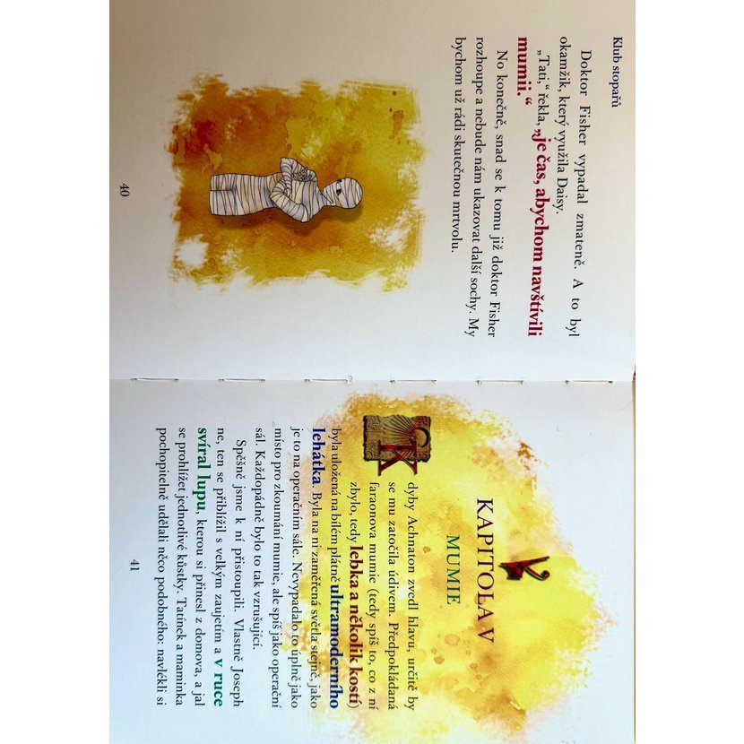 Detektivní příběh pro děti od 8 do 12 let Kluk stopařů přináší jedenáctý díl s názvem Ukradená mumie. Naši přátelé z klubu Stopařů přivítají v Káhiře svou starou kamarádku Daisy Fisherovou, světovou šampionku ve střelbě z luku. Její otec, slavný doktor Fischer, zkoumá záhadnou bezejmennou mumii. Je to snad Achnaton? Slavný egyptský faraon, nebo nikoliv?