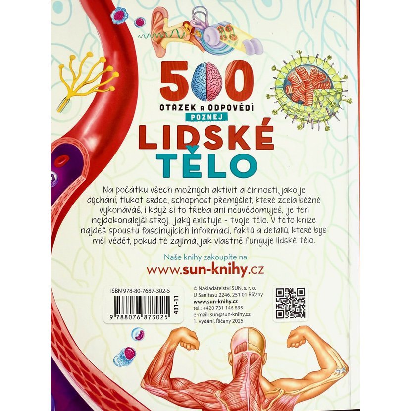 Úžasná dětská encyklopedie „500 otázek a odpovědí: Poznej lidské tělo“ je bohatě ilustrovaná kniha tištěná na kvalitním papíře s atraktivním holografickým obrázkem na obálce, který zaručeně zaujme každé dítě. Tato kniha baví a vzdělává děti, které chtějí poznat svůj vlastní „dokonalý stroj“ – lidské tělo, a odhaluje, jak fungují základní životní procesy, jako je dýchání, tlukot srdce nebo schopnost přemýšlet, často bez toho, aniž bychom si to uvědomovali.