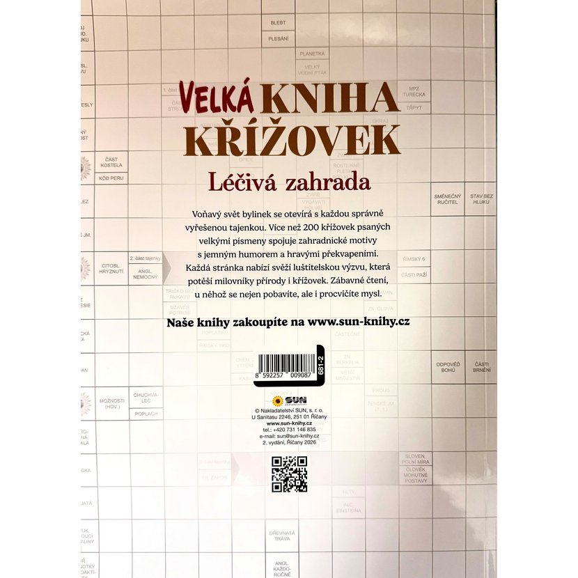 Ponořte se do světa vůní, barev a léčivé moci rostlin! Velká kniha křížovek – Léčivá zahrada od Nakladatelství SUN je unikátní publikace, která spojuje radost z luštění s hlubokou moudrostí přírody. Na 222 stranách najdete více než 200 přehledných křížovek s velkými písmeny, které vám odhalí tajemství bylinek, jejich pěstování a využití pro zdraví.
