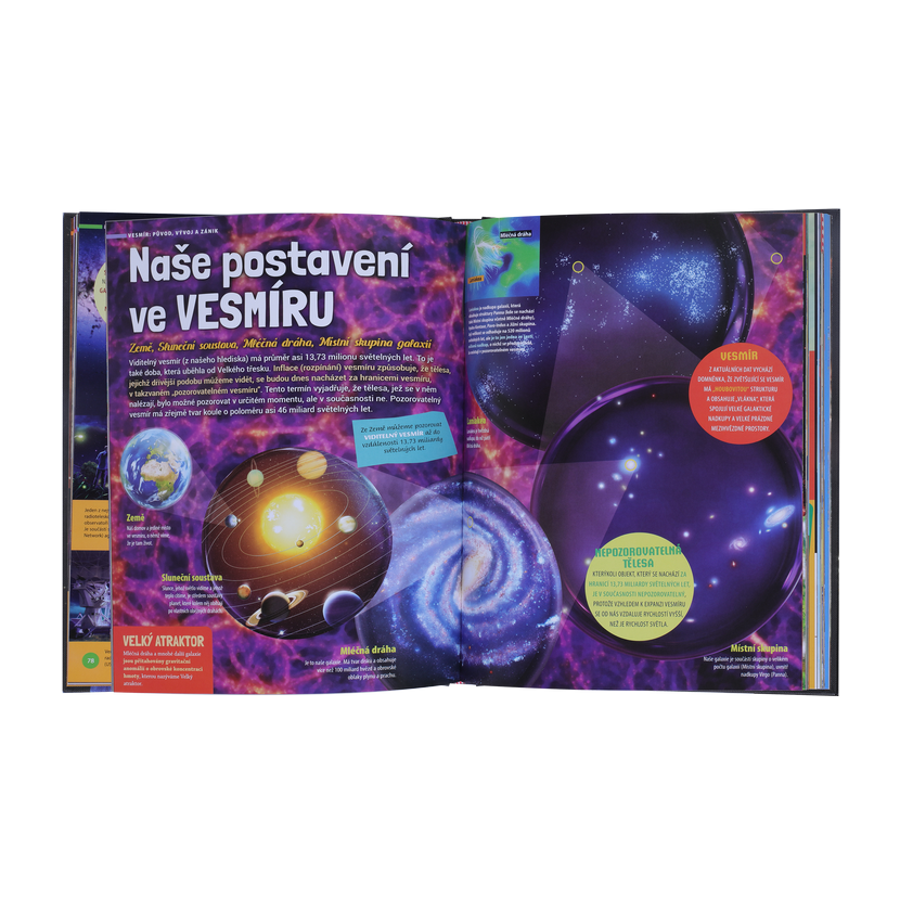 Velká encyklopedie vesmír -My lidé jsme nesmírně zvídaví a naše touha po poznání nás nutí zvedat stále častěji zrak noční obloze a zkoumavě je si jí prohlížet. Sami sebe se ptáme: Jak asi vznikly hvězdy? Odkud se to vzalo Slunce a odkud Měsíc? Z čeho jsou planety? Jaké je naše místo ve vesmíru? Spolu s touto knihou se s námi vydejte na úžasnou cestu vesmírem a poznejte neuvěřitelnou spoustu zajímavosti a faktů o hvězdách, planetách, černých dírách, Velkém třesku......