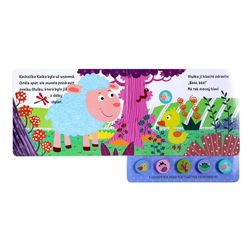 Tato báječná zvuková knížka bude bavit všechny děti. Ty se poznají různá zvířátka, které mohou potkat na statku. Knížka je plná zábavných ilustrací a děti také mohou mačkat tlačítka a pouštět si zvuky. Knížka dá i těm nejmenším možnost upevnit jejich pozorovací schopnosti a ukáže jim, jak dělají jednotlivá zvířátka.