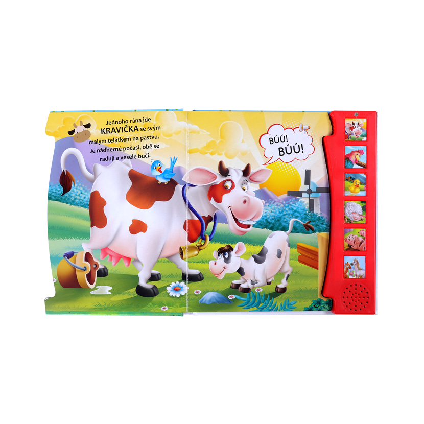Báječná zvuková knížka pro děti. Seznámí se se zvířátky na statku. Poznají kravičky, koníky, ovečky, prasátka i další.